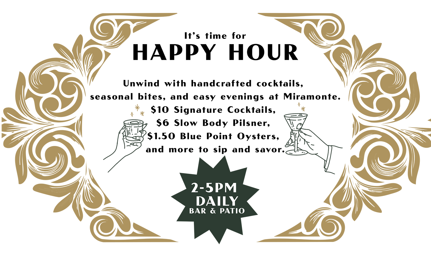 DIRECTIONS CALL US Book your Miramonte Restaurant reservation on Resy Want to talk to us? Call (520) 372-2524We’re open Tuesday - Sunday11:00AM - 11:00PM Email Address Sign Up Cheers! Don’t Miss a Drop… Sign up for updates, events, and announcements.